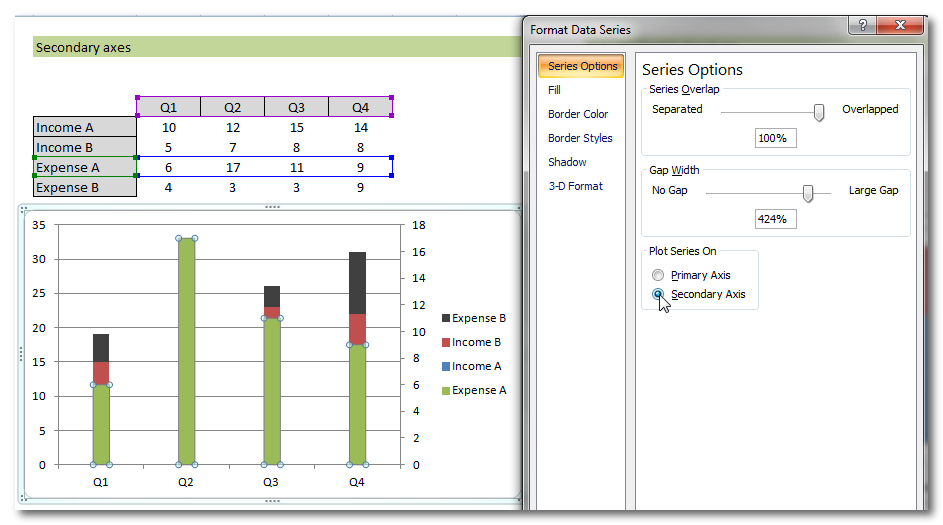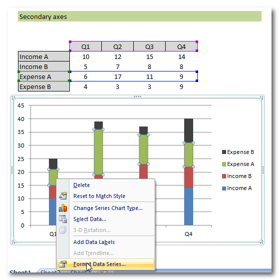 - לחזור על אותה פעולה עבור הסוג השני של ההוצאות, כך שכל ההוצאות יהיו משוייכות לציר Y משני