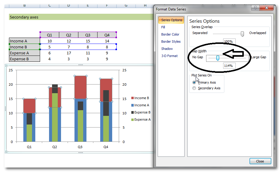 - כעת נשאר לסדר את עובי העמודות כדי שעמודות ציר Y ראשי לא ייחסמו על ידי עמודות ציר Y משני