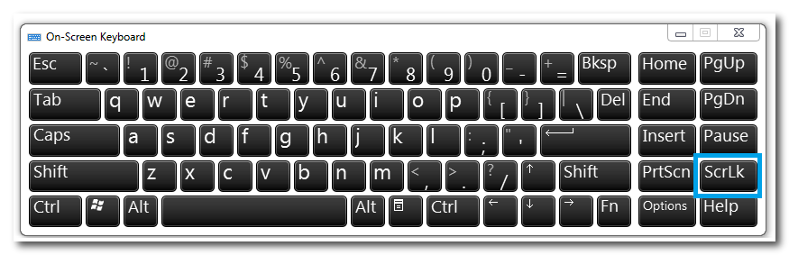 במקלדת מסך (שניתן להפעיל אותה דרך כםתור החלונות: All Programs/Accessories/Ease Of Access) הכפתור SCROLL LOCK נמצא בפינה ימנית תחתונה: