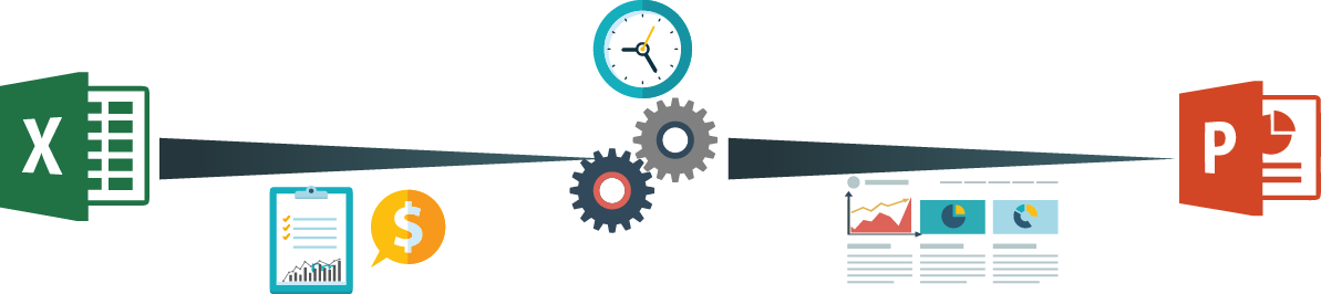נתאר בקצרה תסריט שימחיש מספרית את החסכון בזמן בעזרת אוטומציה. מצגת סטנדרטית של 10 גרפים ו-5 טבלאות לייצוא ל-PowerPoint דורשת כ-15-20 דקות של עבודת העתקה מאקסל וסידור והתאמות בשקפים של מצגת פאוורפוינט. 20 דקות מדיי שבוע. אותו תהליך בצורה אוטומטית ידרוש פחות מ-2 דקות. החסכון הוא פי 10 והחזר השקעה המשוער הוא יום אחד.