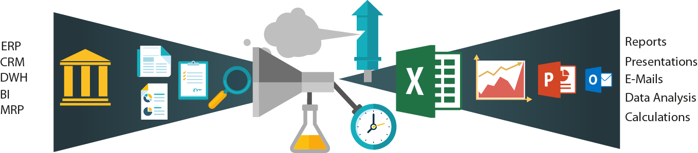 מערכות אלו תומכות בתהליכים עסקיים ומספקים תשתיות לצרכי ניהול, בקרה, מדידה וקבלת החלטות. אולם, כמו במבנים מסובכים רבים, קיימים מכשולים בדרך לשיקוף מלא של תהליכים. דינאמיות עסקית דורשת ביצוע עדכונים והתאמות יקרות. למשל, אינטגרציה של מערכות בתתי ארגונים עם מערכות של ארגון אב, זה פרויקט בעלות גבוהה מאד וברמת מורכבות גדולה. וכך, לעיתים קרובות, נאלצים המשתמשים למצוא פתרונות יצירתיים על להמשיך ולספק תשובות לגבי רמת ביצועים. בשלב זה מגיע האקסל משולחן עבודתו של מומחה רכש, למשל, והוא מוצא שיטות ודרכים לגשר על הפערים.
