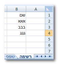 נניח שבעמוד "רשימה" נמצאת טבלה הבאה בעמודה B: