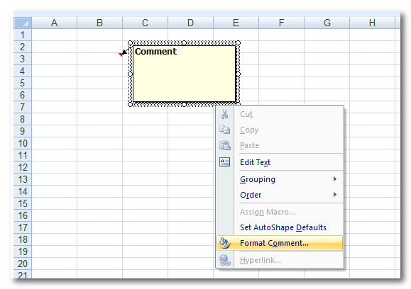 שלב 1: יצירת הערה לתא (כפתור ימני של העכבר על התא והוספת הערה) ועריכת ההערה (שוב כפתור ימני של העכבר על אחד הגבולות של מלבן ההערה)