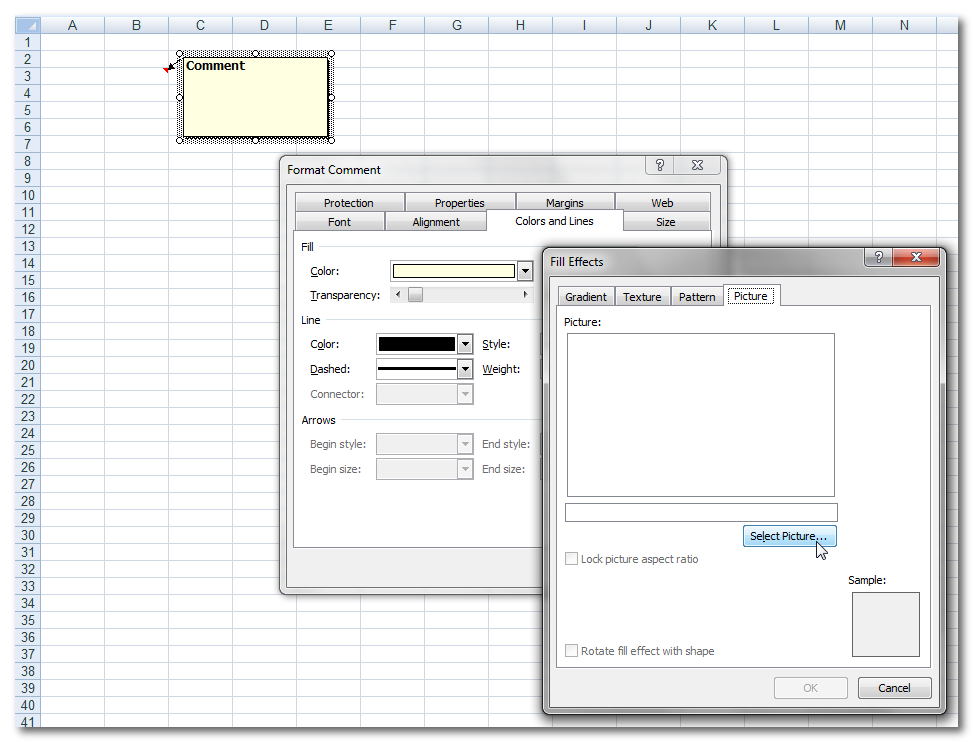 אחת הדרכים להוסיף תמונה לתא באקסל היא שימוש בהערות (Comments), כך שכאשר מצביעים עם סמן העכבר על התא התמונה תיראה.