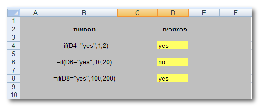 שלב 1: ניקח טבלה לדוגמא שמכילה מספר פרמטרים ומספר נוסחאות. בסופו של תהליך, נרצה שלא תהיה גישה לנוסחאות, ואילו הפרמטרים יהיו ניתנים לעדכון