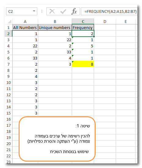 עם איזה פונקצה עלי להשתמש באקסל כאשר אני רוצה לשלןף מטבלה איזה מספר הכי שכיח?? ואיך אני משתמש בפונקציה?