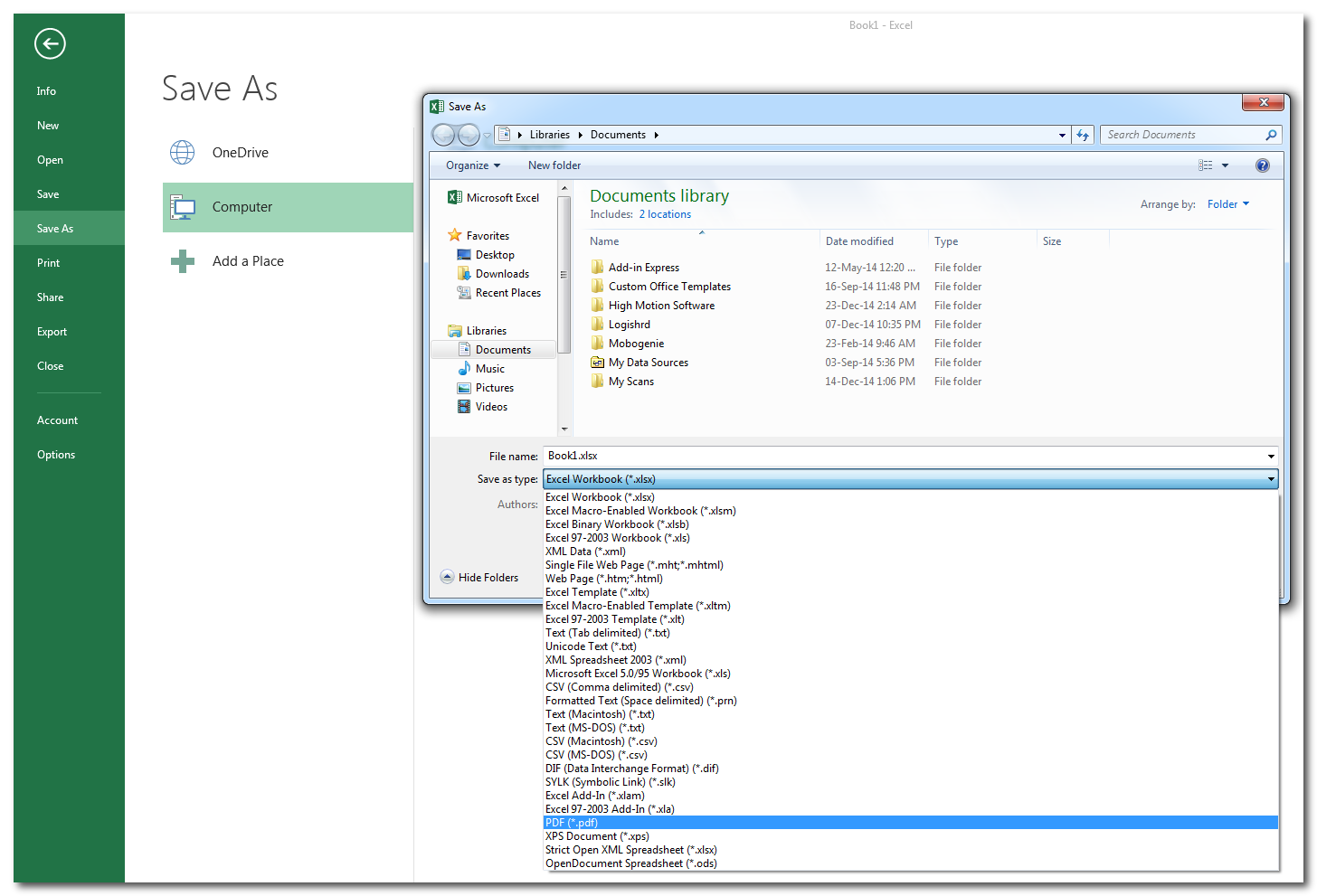 יש לשמור בשם (SAVE AS) ולבחור סוג קובץ PDF לפי התמונה למטה: