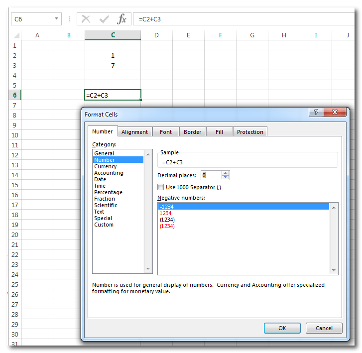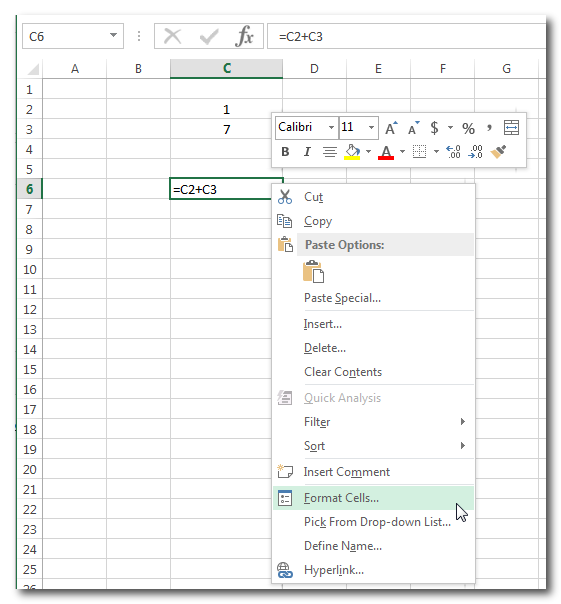 על מנת לקבל בתא תוצאה של נוסחה, בעיצוב תאים יש לבחור כללי או מספר, ואז להיכנס לעריכת התא וללחוץ אנטר: