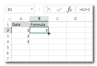 יש לעמוד על התא עם הנוסחא ולהצביע עם הסמן של העכבר על הפינה הימנית תחתונה של התא עד שיופיע סימן + קטן. ללחוץ פעמיים על סימן הפלוס וזה אוטומטית יגרור את הנוסחא לתחתית הטווח עד השורה האחרונה שבה יש ערך בתא בעמודה הצמודה משמאל: