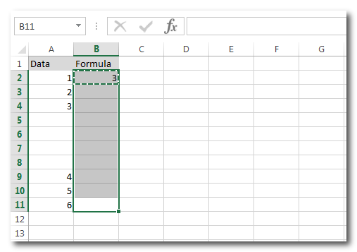1. במקרה שעמודת הנוסחאות צמודה לעמודה עם ערכים עד סוף הטווח לחישוב: