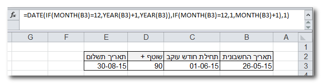 הנוסחה מחשבת את תחילת החודש העוקב: