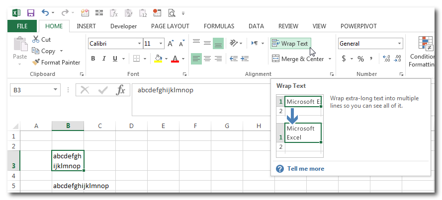 2 - שימוש ב-WRAP TEXT. על מנת לאפשר גלישת טקסט לתא שליד, יש לבטל עיצוב של WRAP TEXT. להלן דוגמא:
