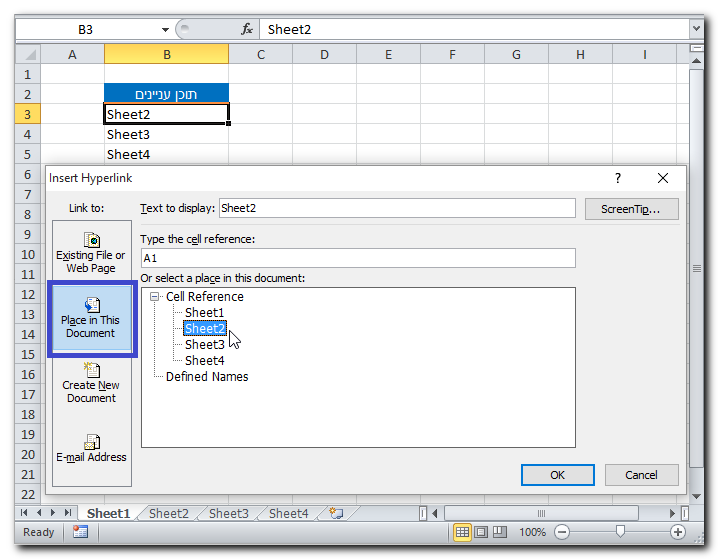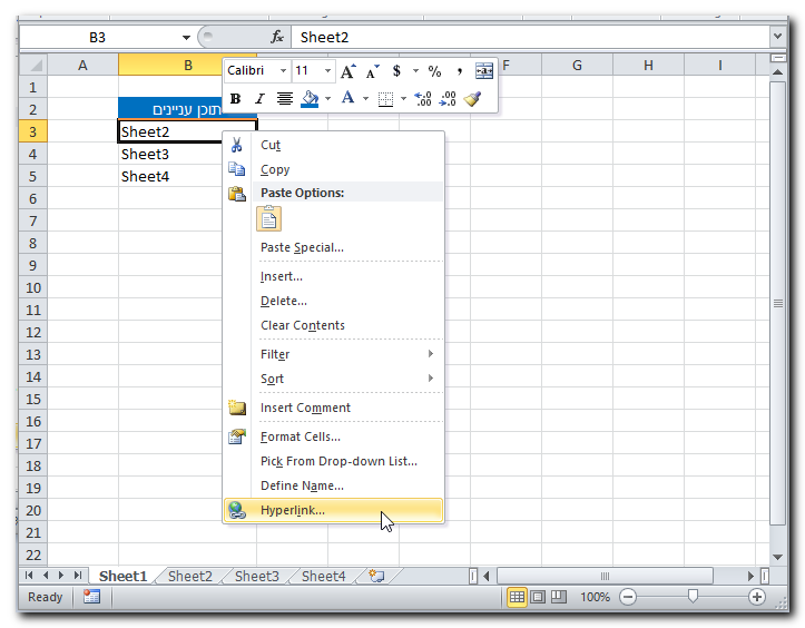יש מספר שיטות לבנות תוכן עניינים לגיליונות בקובץ אקסל. להלן נמנה 3 שיטות.