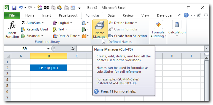 ראשית, יוצרים טווח (Named Range) באופן הבא: