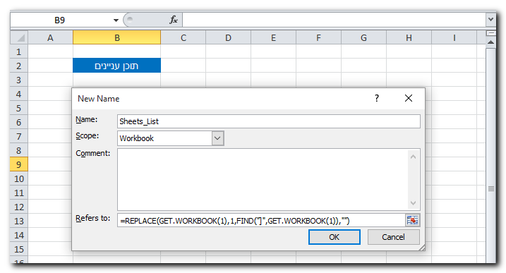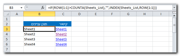 יוצרים טווח חדש בשם Sheets_List עם הנוסחא הבאה: