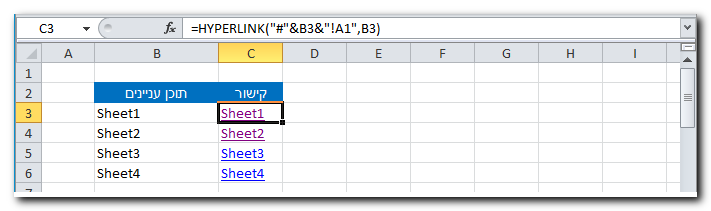 בעמודה צמודה בונים את נוסחת הקישור בעזרת HYPERLINK וגוררים מטה: