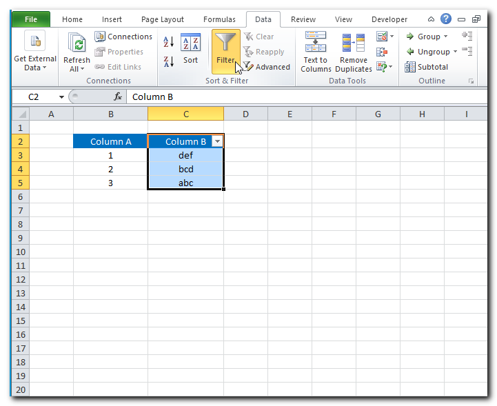 לאחר מכן, בוחרים תחילה רק את טווח התאים בעמודה בה נרצה לסנן ומפעילים סינון: