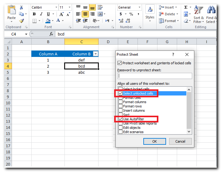 כעת, נשאר לנעול את הגיליון תוך הגדרה המאפשרת שימוש בסינון:
