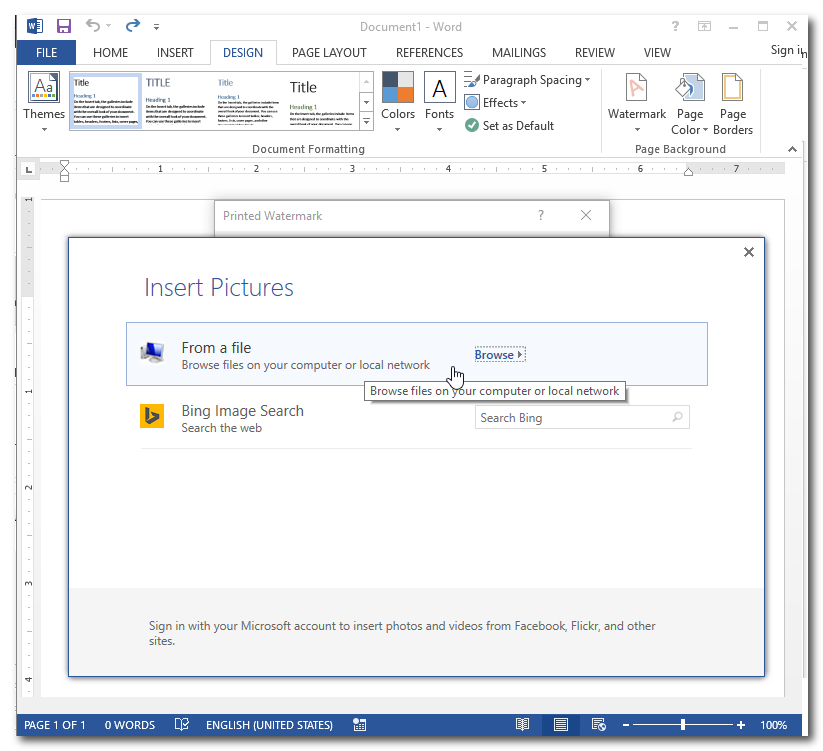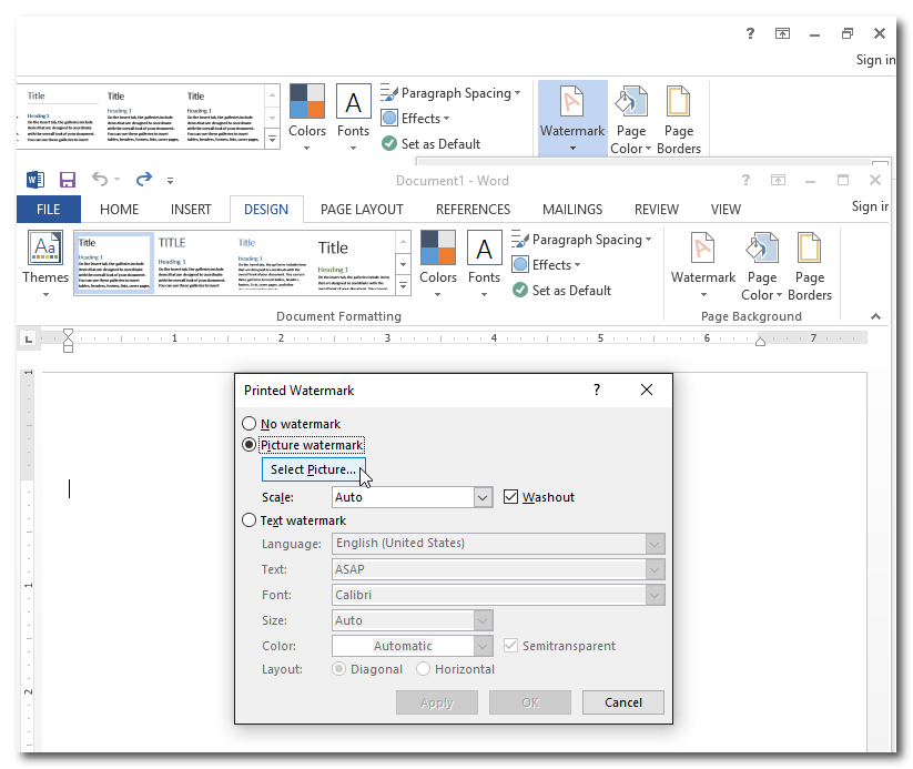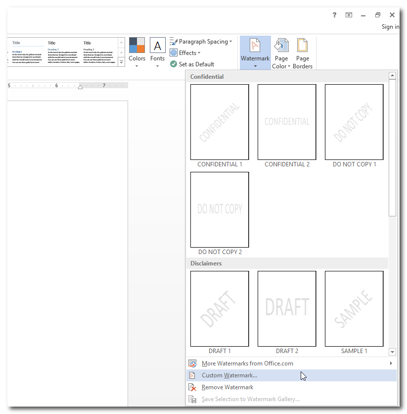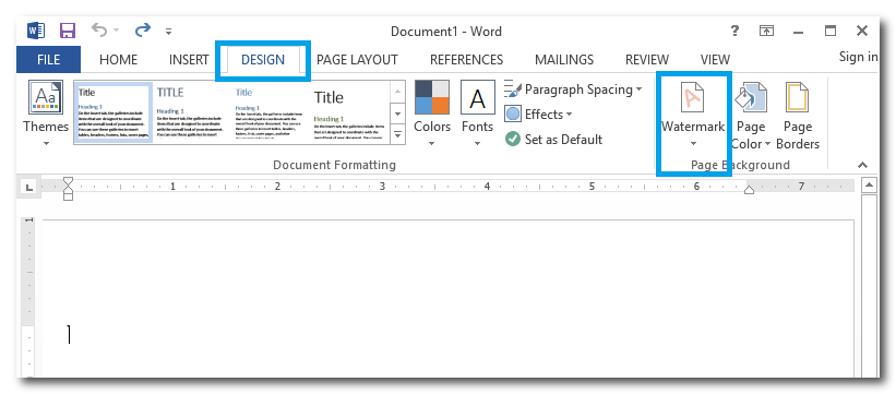 1 - בתפריט DESIGN לבחור WATERMARK: