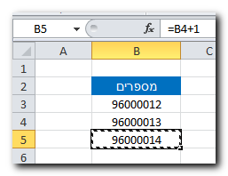 ראשית, נשים את המספר הראשון ואחריו נוסחה שמעלה את ערך המספר באחד.