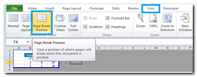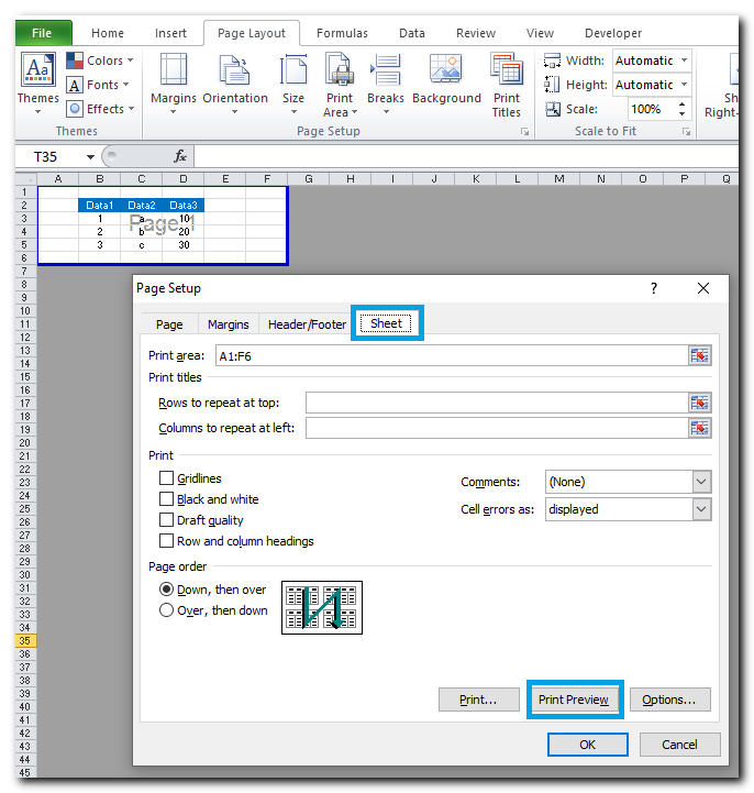 בלשונית SHEET בחירת PRINT PREVIEW: