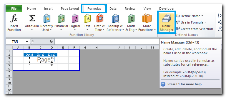 1 - בחירת מנהל שמות בתפריט נוסחאות: