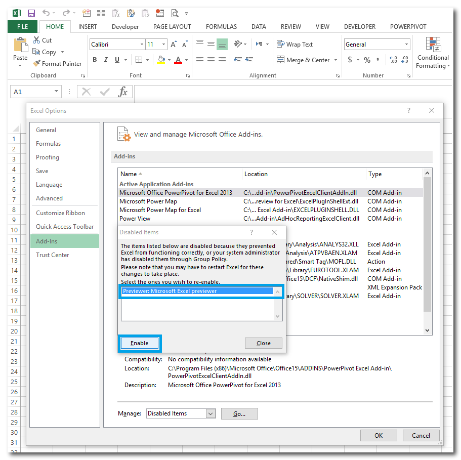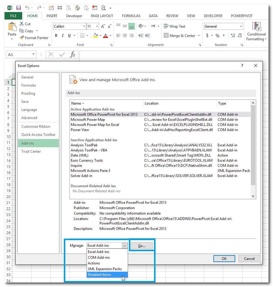 ולאחר מכן תוספים שאינם פעילים + לחיצה על GO: