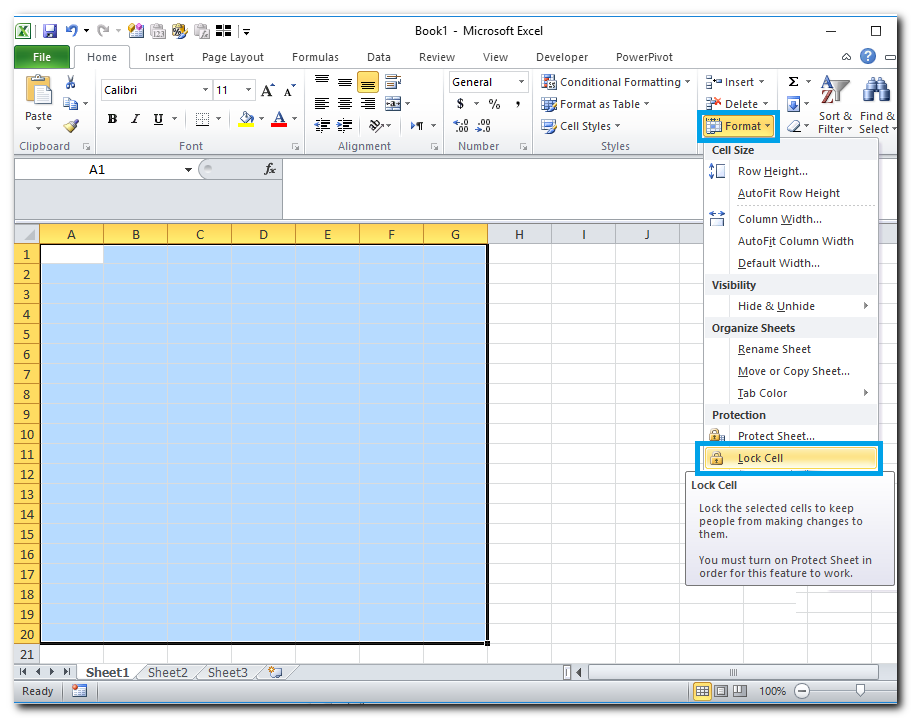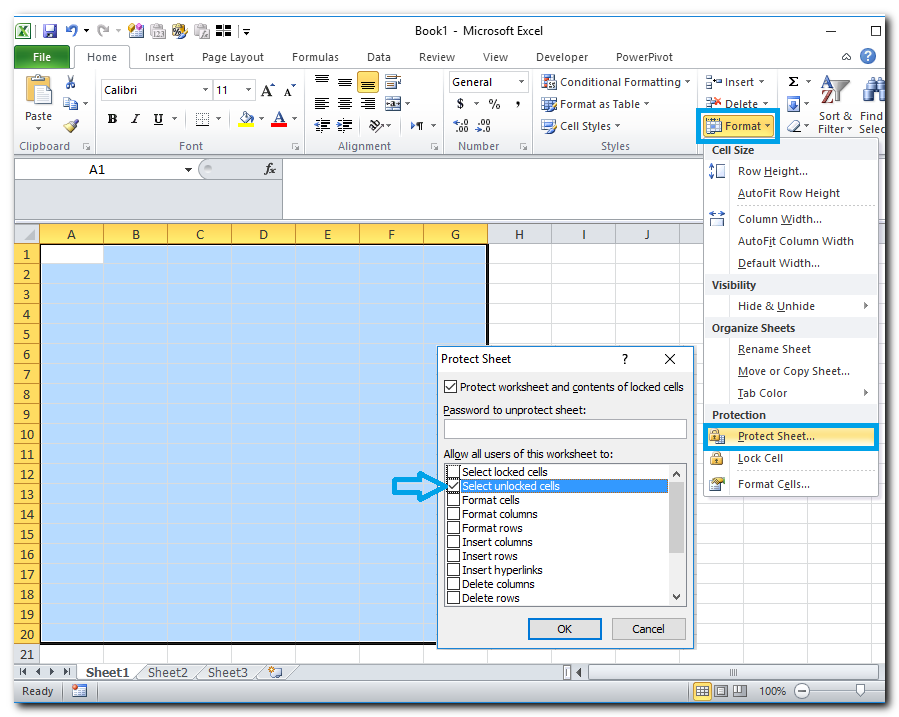 במצב ברירת מחדל כל התאים בגיליון מוגדרים כנעולים כאשר נועלים את הגיליון. לכן, פתיחת תאים מסוימים מבוצעת לפני נעילת הגיליון: