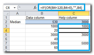 הדרך להתמודד עם מצב זה היא להשתמש בעמודת עזר, שבה ניתן להציב תנאי על המספר בעמודת נתונים, למשל, אם המספר קטן מ-120 או שווה לאפס  - לשים תא ריק. זו דרך עדיפה משימוש בנוסחת מערך בייחוד עבור מצבים של הרבה נוסחאות, כי נוסחאות המערך לרוב מאטות את החישובים.