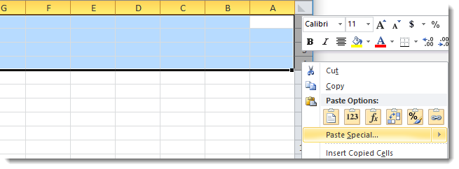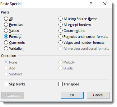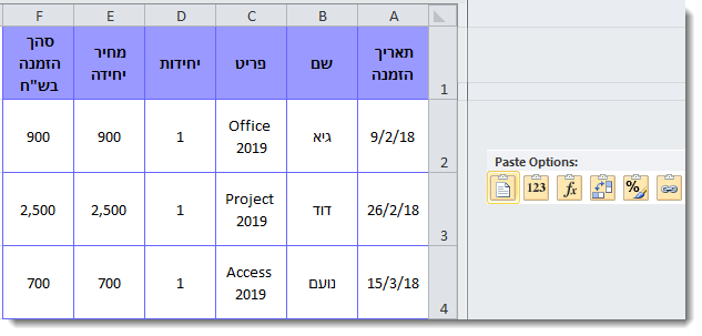 2) בקובץ האקסל השני יש לבחור את אותו מספר שורות ולהדביק עיצובים (לחצן ימני בעכבר -> הדבקה מיוחדת -> עיצובים).
