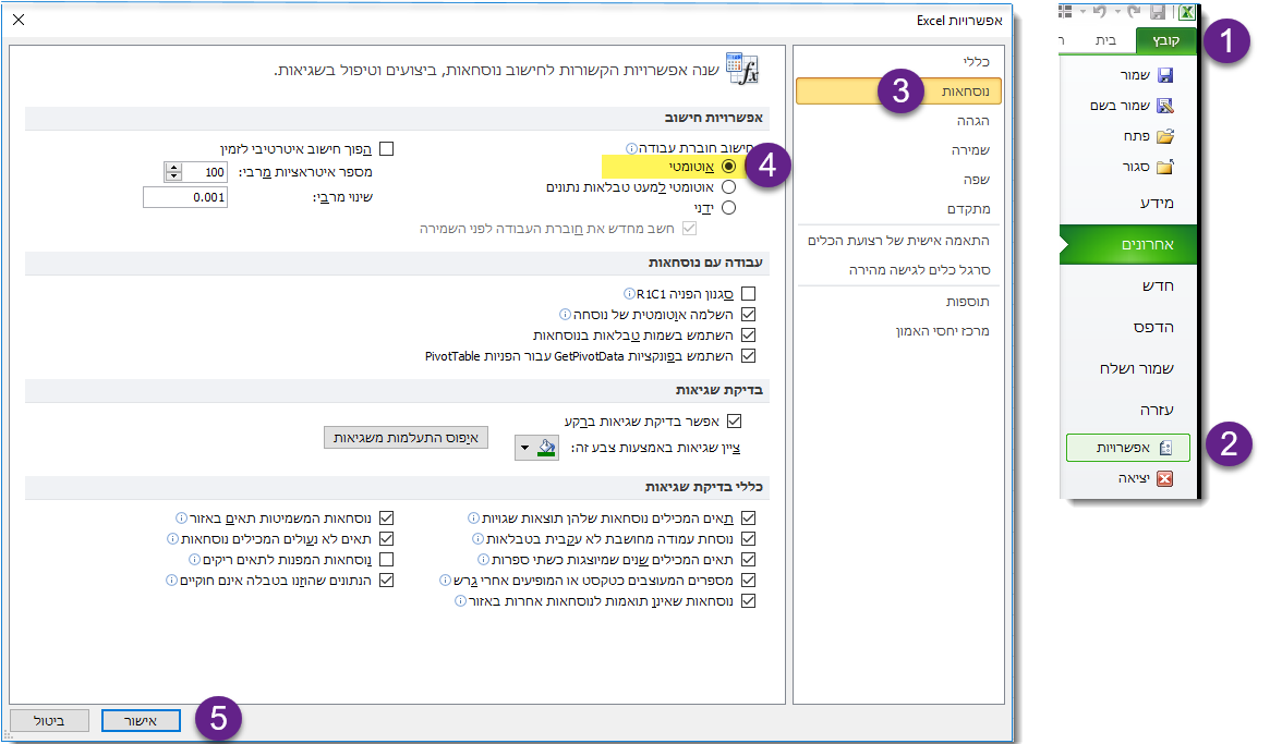 יש לעדכן את הגדרת חישוב חוברת עבודה באקסל ל-"אוטומטי" על פי השלבים הבאים: