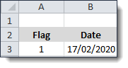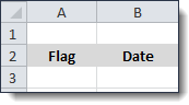 1. בגיליון אקסל בתא A2 נגדיר את הטקסט "Flag" ובתא B2 נגדיר את הטקסט "Date".