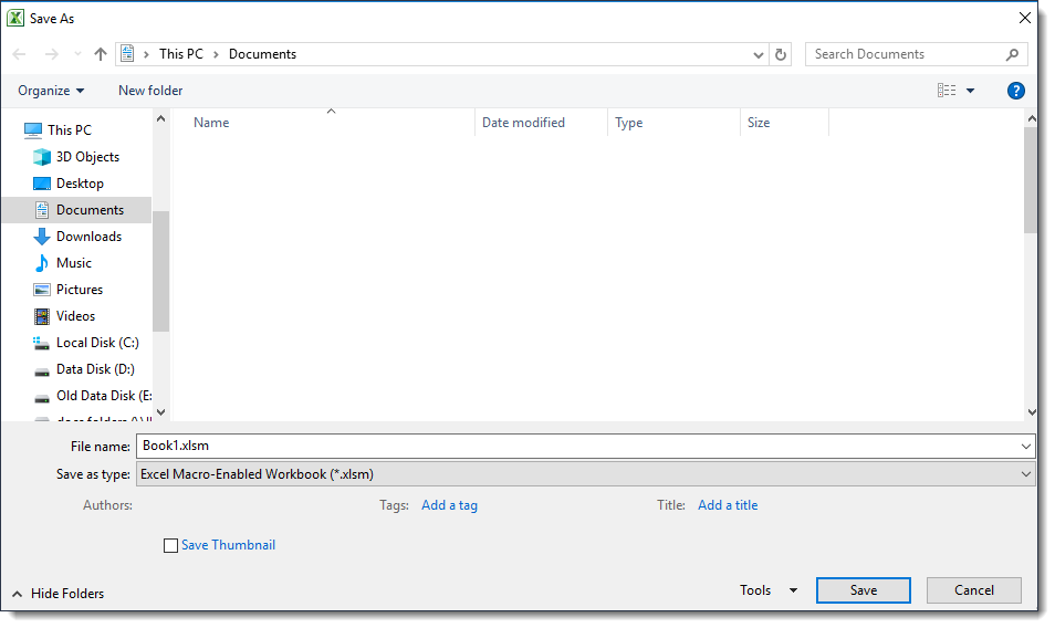 5. על מנת שהקוד יישמר יש לשמור את קובץ האקסל בפורמט XLSM באופן הבא -