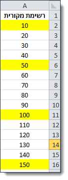 1. בגיליון אקסל נגדיר את הרשימה המקורית בעמודה A.