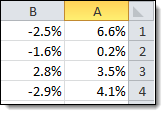 1. בגיליון אקסל נגדיר את טבלת הנתונים הבאה הכוללת מספרים חיוביים ושליליים.