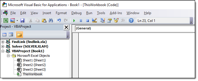 1. נפתח את עורך VBA של אקסל על ידי לחיצה על Alt+F11, נלחץ על ThisWorkbook על מנת לפתוח חלון להזנת קוד VBA.