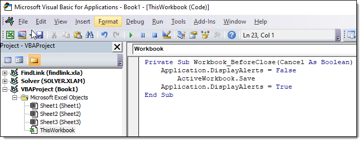 Private Sub Workbook_BeforeClose(Cancel As Boolean)