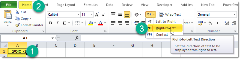 3. נלחץ על "ימין לשמאל" (או Right to Left) על מנת לשנות את כיוון הטקסט מימין לשמאל.