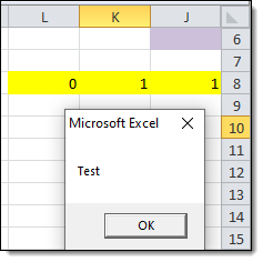 כעת נעדכן את ערך התא K8 ל-1 והתוצאה היא שהפונקציה Test תופעל.