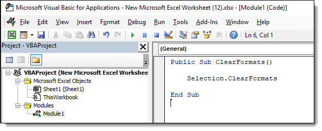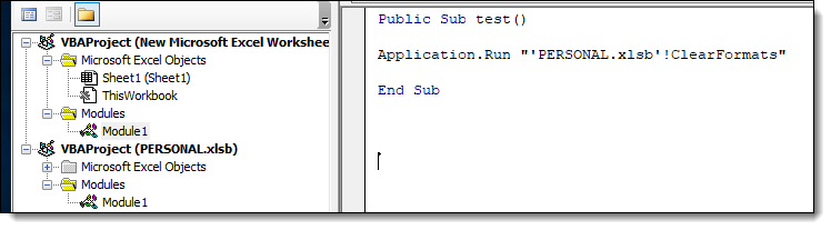 8. ניתן לקרוא למודול ClearFormats מקובץ אחר על ידי VBA באופן הבא-