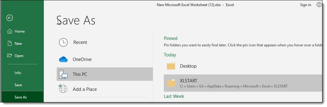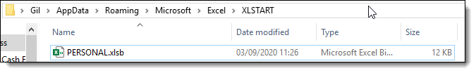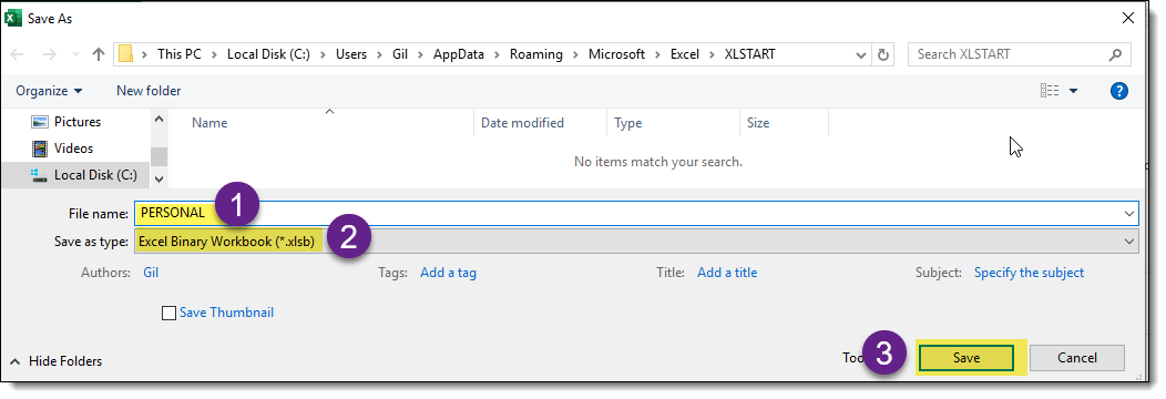 5. יש לשמור את הקובץ בשם PERSONAL.xlsb בנתיב - C -> Users -> UserName -> AppData -> Roaming -> Microsoft -> Excel -> XLSTART