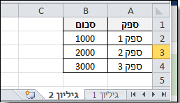 2. בגיליון 2 נגדיר את הטבלה הבאה: ספק וסכום.