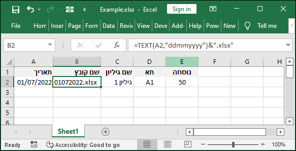 שם קובץ - נוסחה להגדרת שם הקובץ המתאים בהתאם לתאריך לדוגמה:
