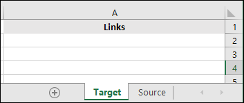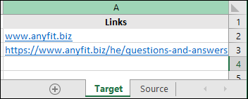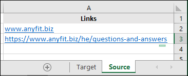 שלב 1 - נגדיר באקסל גיליון Source שיכיל רשימת קישורים וגיליון Target עם רשימת קישורים ריקה.