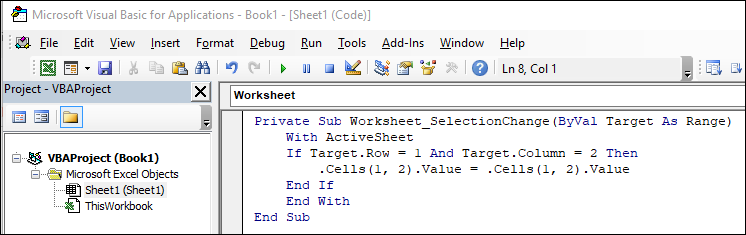 If Target.Row = 1 And Target.Column = 2 Then