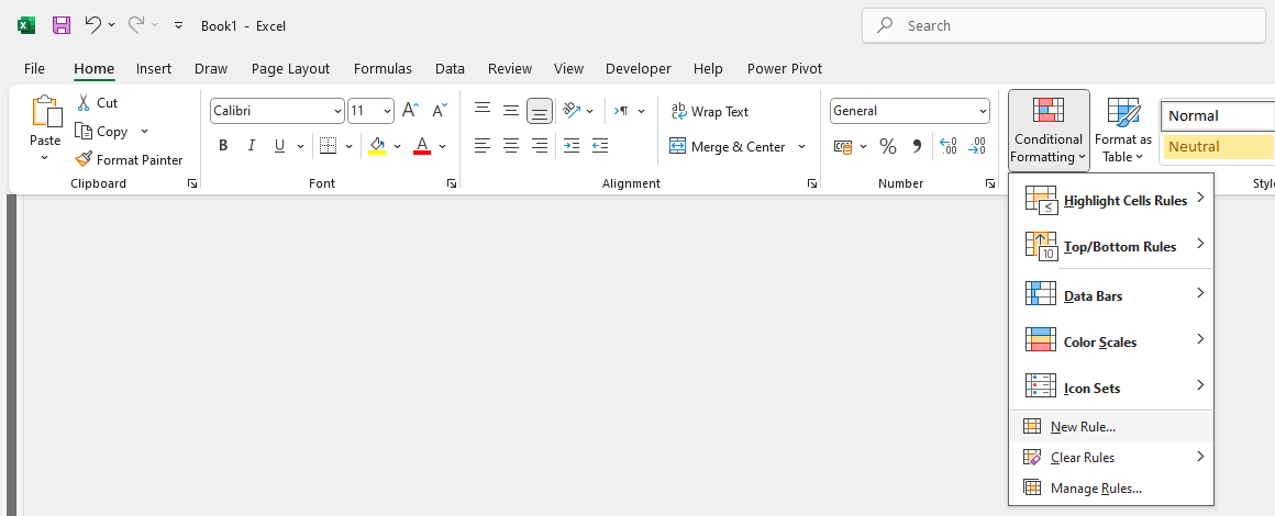בתפריט בית -> עיצוב מותנה נבחר "כלל חדש" -