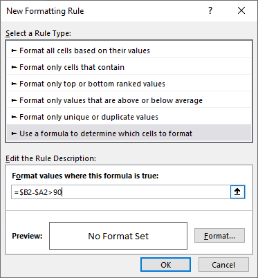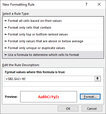 ניתן לבצע זאת באקסל על ידי שימוש בעיצוב מותנה על בסיס נוסחה.