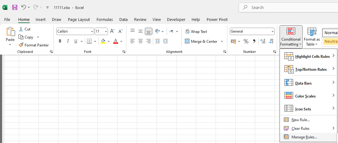 נסמן את תא B2 ובתפריט בית - > עיצוב מותנה נבחר בעריכת כללים -