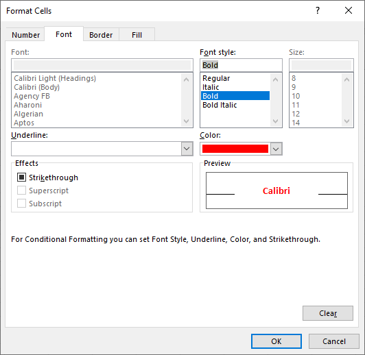 נלחץ על "עיצוב" ונבחר צבע פונט אדום, סגנון פונט "מודגש" ונלחץ על "אישור"
