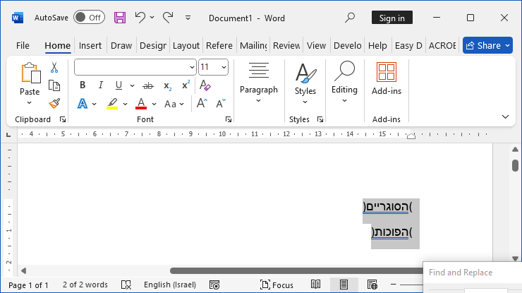 יש לי מסמך וורד גדול עם הרבה העתקות מ PDF, כך שיש לי הרבה משפטים בתוך סוגריים שנתהפכו )הסוגריים(